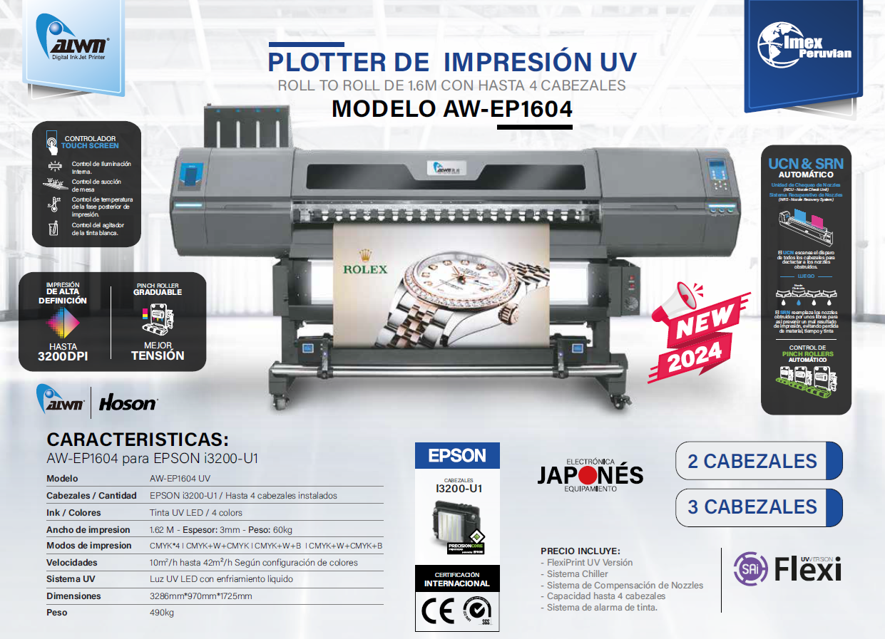 Si estás buscando un plotter de impresión UV roll to roll de 1.6 m con cabezales Epson i3200-U1 para llevar tu producción al siguiente nivel, el AW-EP1604 es una de las opciones más completas del mercado. Contáctanos para una demostración o cotización personalizada.